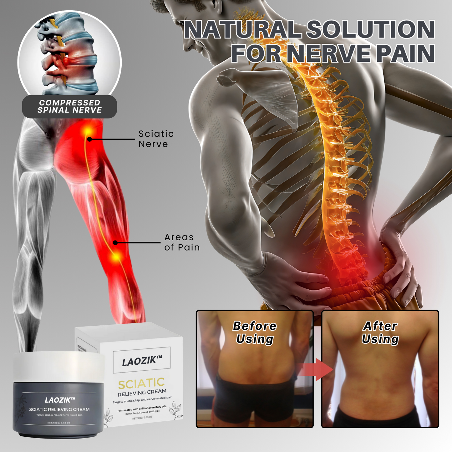 Most creams only mask the pain. LAOZIK™ calms the sciatic nerve at the source—for real, lasting relief.