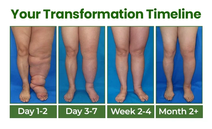 Weeks 2-4: Visual changes begin. Swelling decreases noticeably, especially around ankles. Clinical research shows 47-52% reduction in leg volume at this stage, with most users reporting better mobility and all-day comfort.